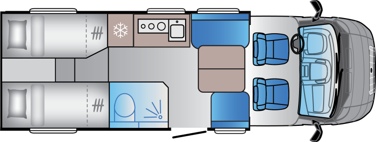 Pakkaa kaikki tarpeellinen, ja vähän enemmänkin! Sun Living -ajoneuvoissa on runsaasti säilytystilaa: tilavat laatikostot, suuret vaatekaapit, säilytystilaa sängyn alla ja jopa piilossa olevat lattialokerikot pitävät tärkeimmät tavarasi järjestyksessä ja helposti saatavilla.