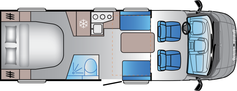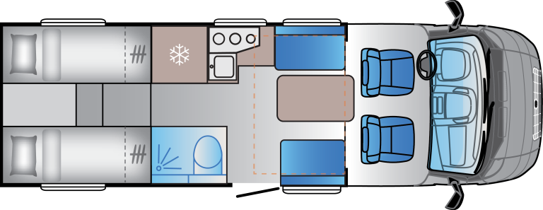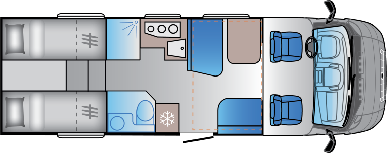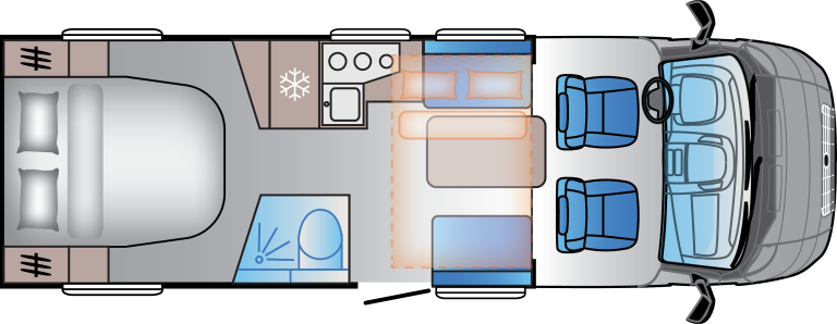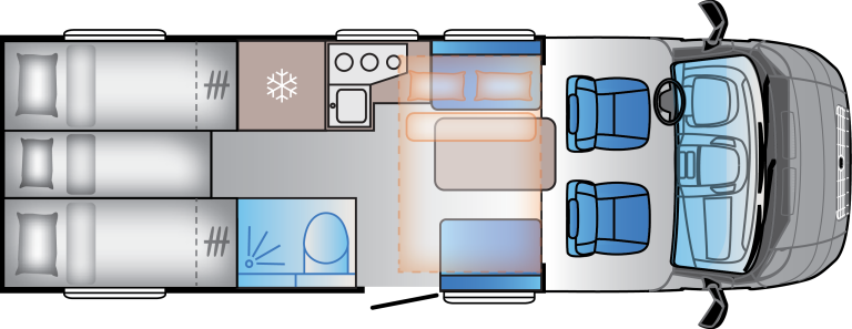 Pakkaa kaikki tarpeellinen, ja vähän enemmänkin! Sun Living -ajoneuvoissa on runsaasti säilytystilaa: tilavat laatikostot, suuret vaatekaapit, säilytystilaa sängyn alla ja jopa piilossa olevat lattialokerikot pitävät tärkeimmät tavarasi järjestyksessä ja helposti saatavilla.